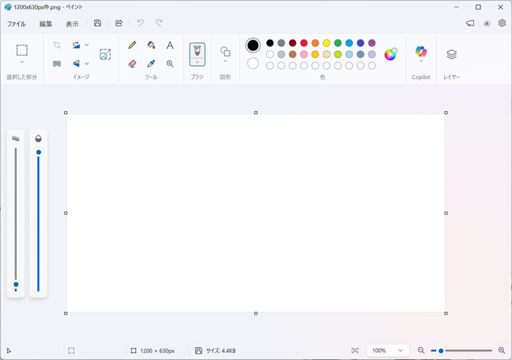 下図の例は、Windowsのペイントツールで作った1200 x 630pxの空白の枠画像です。(ファイル名: 1200x630px枠.png)