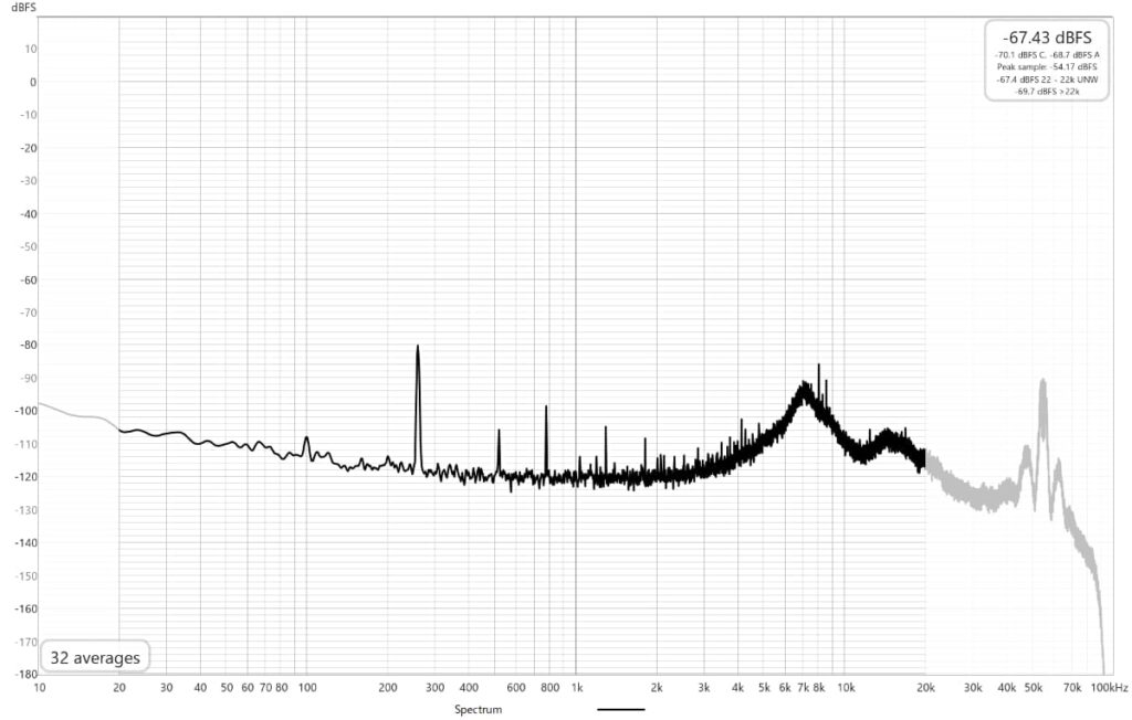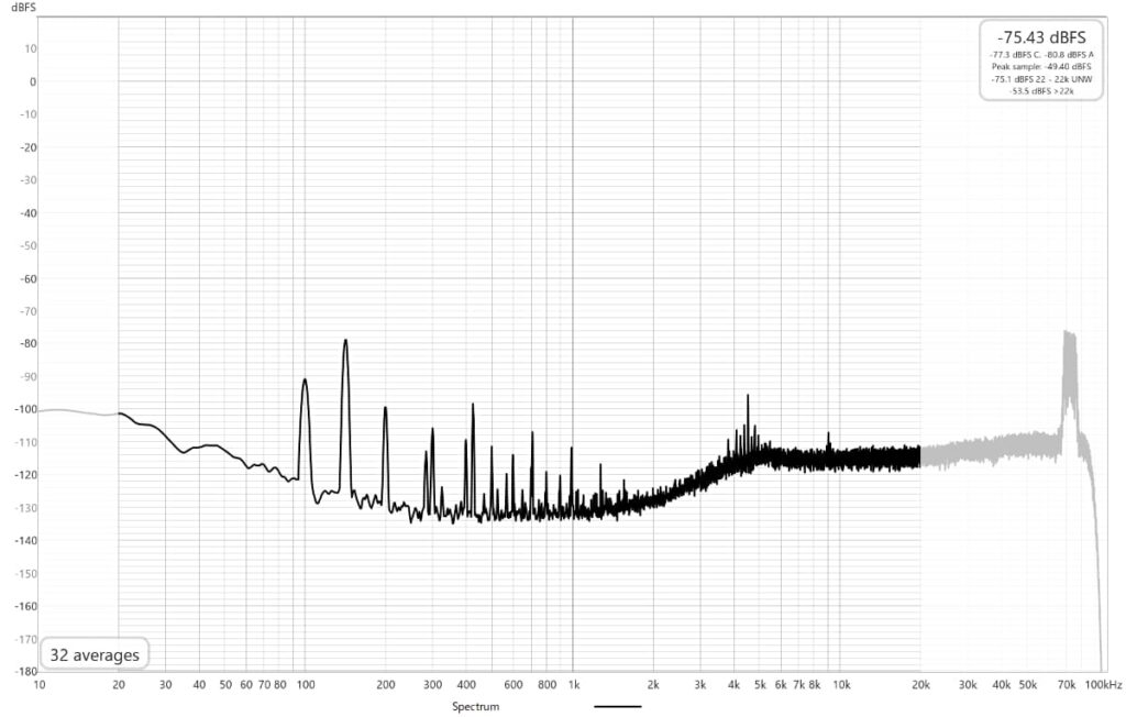 ノイズフロアは高めですが、高調波は少な目です。