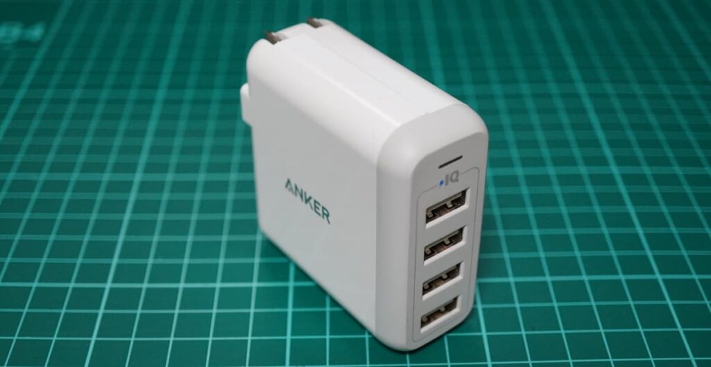 古い機種になりますが、Ankerの4ポート合計40W USB電源アダプターです。