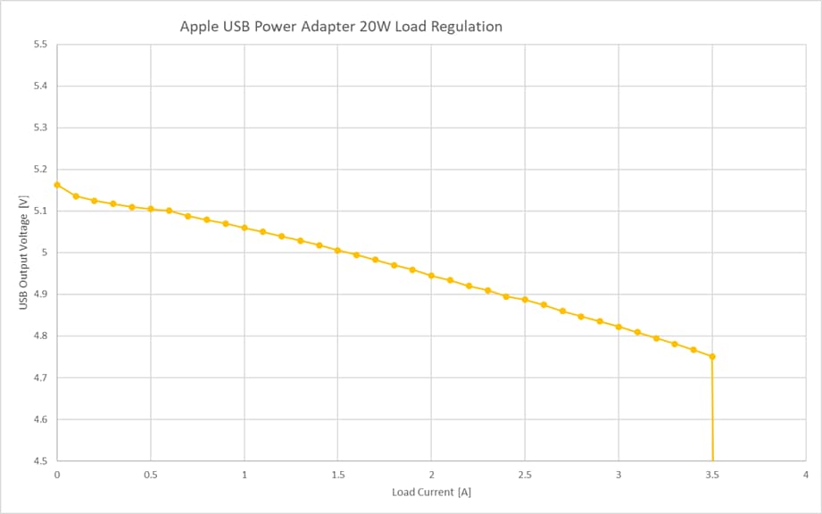 定格 5V 3Aに対し、3.5Aを超えると過電流保護が働き出力を停止しています。